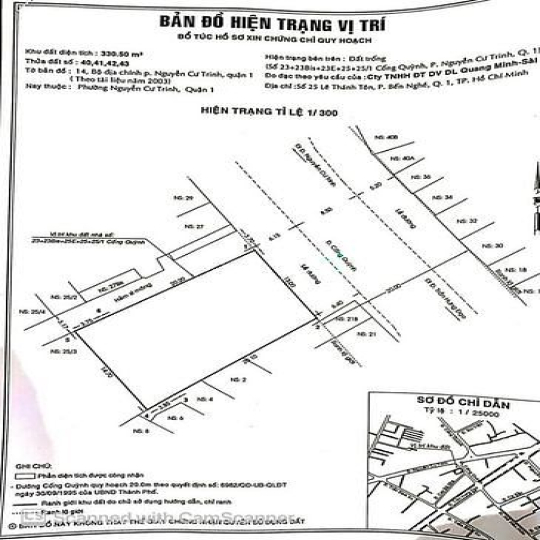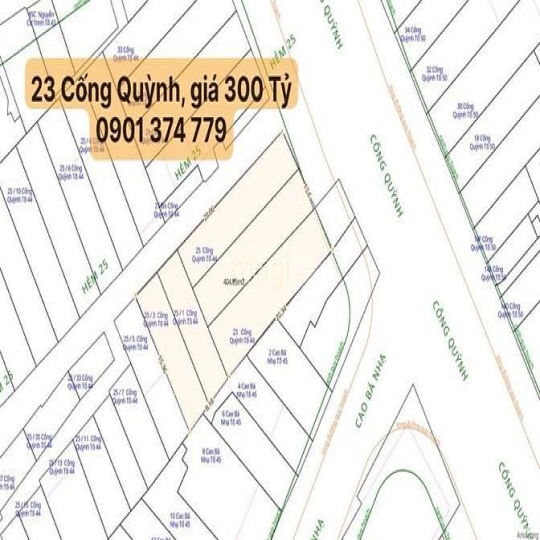 - Căn 5: Địa chỉ: 23 Cống Quỳnh, Phường Nguyễn Cư Trinh, Quận 1. Góc 2 mặt tiền thoáng. S 13 x 24 ( hậu 14,7) Giá 300 tỷ