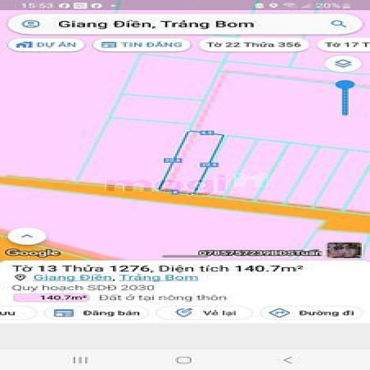 Bán 140m thổ cư, Đường nhựa, xã Giang Điền, huyện Trảng Bom
