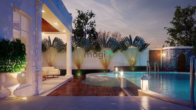 - Kết cấu : Trệt, 2 Lầu + Ấp mái - Sân vườn - Hồ bơi - 6 phòng ngủ