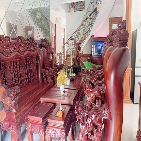 Nhà biệt thự gồm: phòng khách, bếp, 5 phòng ngủ, 3 wc, trần được dát vàng 18k cực VIP. Bộ bàn ghế KHỦNG gần 1 tỷ. Toàn bộ gỗ quý. Tặng full nội thất