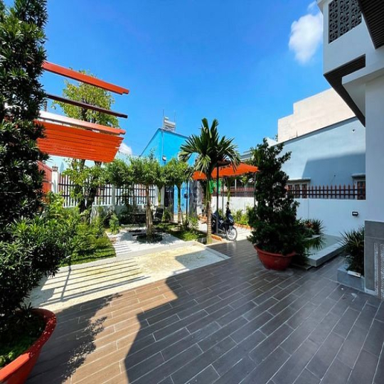 • Kết cấu : 1 trệt 2 tầng lầu. Gồm 4PN, 5WC ( mỗi phòng đều có ban công riêng ), hồ cá Koi, gara xe hơi, sân vườn rộng rãi thoáng mát.